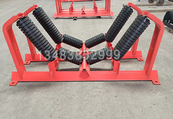 緩沖托輥組由緩沖輥和支架組成,輸送帶槽角一般為20°、30°、35°、45°、60°等,也可根據(jù)客戶(hù)要求生產(chǎn)。安裝間距一般為400mm以?xún)?nèi)。為方便施工操作,支架結(jié)構(gòu)可以改良成伸縮式或可調(diào)節(jié)角度樣式。